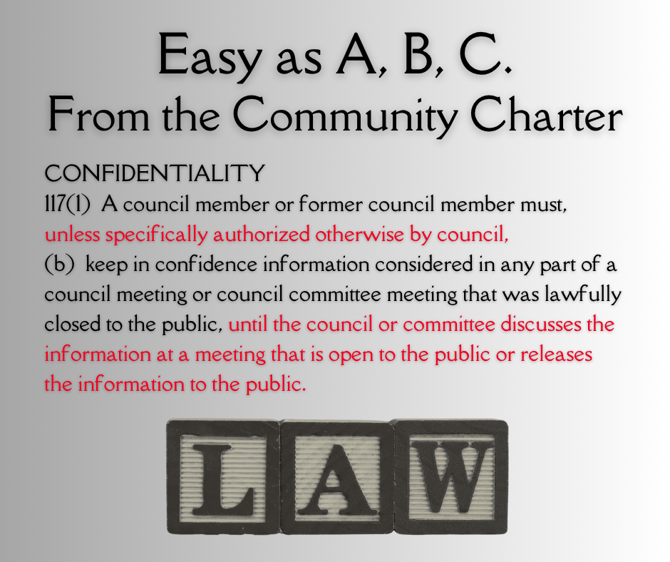 Reporting out from meetings is a council function – defined by section 117 of the Community Charter. Odd that three years into the term the mayor is still unfamiliar with this simple rule.